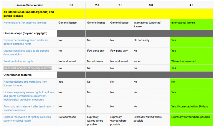 Mehr Details zu den Unterschieden der einzelnen Lizenzversionen gibt es im CC Wiki.
