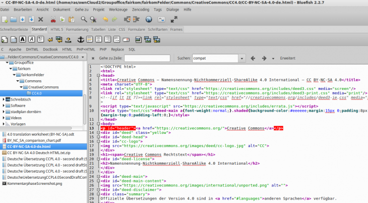 Nach fast zwei Jahren Arbeit übergeben wir nun die Übersetzung der CC 4.0 Version an CC-HQ, damit sie diese final prüfen und in deren Webseite einbinden können. Mit unseren CC-Kollegen in Deutschland und der Schweiz feilschten wir um Begrifflichkeiten und Auslegungen - letztlich sollten wir möglichst nahe am englischsprachigen Original dran bleiben aber juristische Begriffe aus unseren Rechtsräumen verwenden.
