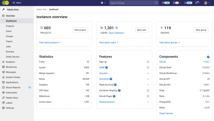 The gitlab instance we host includes standard features like: