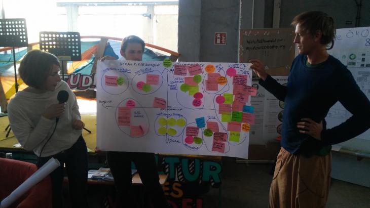 In 10 Themengruppen  wurden Aspekte neuer Ökonomie, Online Kommunikation, Medien, Währungen oder dem guten Leben für Alle heftig diskutiert. Besonders fruchtbar war die Vernetzung mit Plattformen des Wandels, wie "Human Connection", "Karte von morgen" oder "wechange", >> hier sind unsere Notizen.